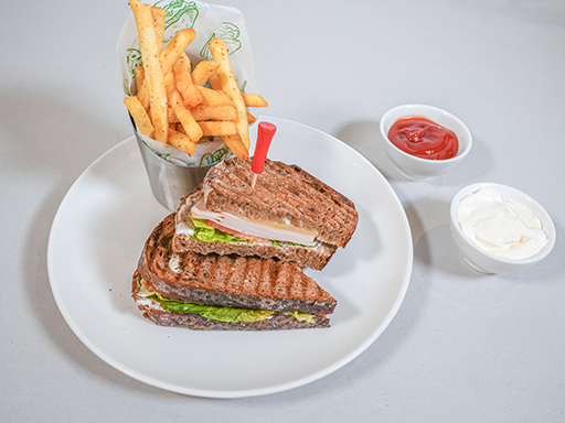 Brown Sour Dough Bread, Turkey, Emmental Cheese, Lettuce & Tomatoes