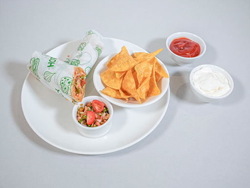 Tortilla Bread, Salsa, Provolone Cheese, Capsicum, Onion, Dynamite Sauce, Lettuce