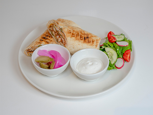 Chicken, Arabic Bread & Garlic Cream, Served with Pickles & Gargir Salad