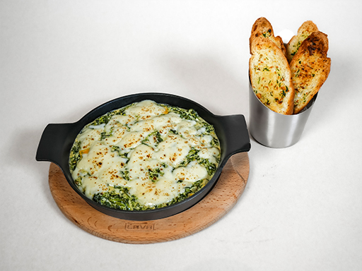 Fresh Spinach and Onions, Mixed with Rich Cream Cheese with Melted Mozzarella, Cheddar Cheese, Served with Toasted Garlic Bread