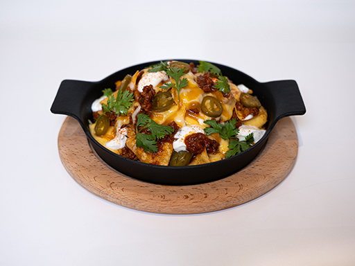 Nachos, Beef Ragout, Cheese, Guacamole, Sour Cream & Salsa