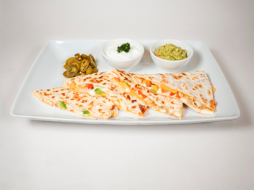 Tortilla, Mozzarella, Cheddar, Mixed Capsicum, Cajun Spices, Sour Cream , Jalapeno, Onion