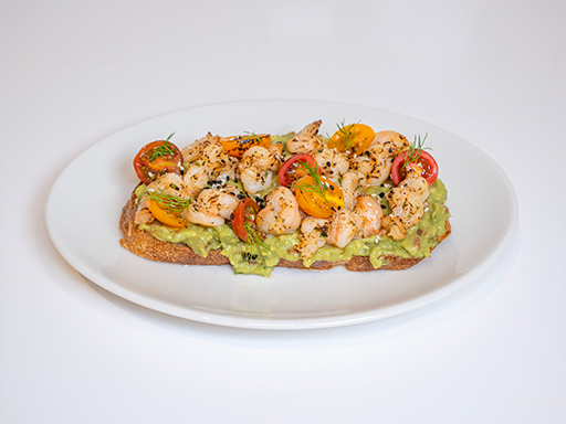 Toasted Sour Dough Bread, Shrimps, Smashed Avocadoes