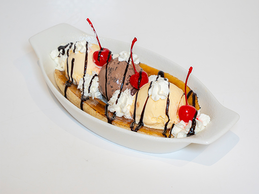 Sliced Banana, Mixed Berries, Vanilla & Chocolate Ice Cream & Chocolate Sauce