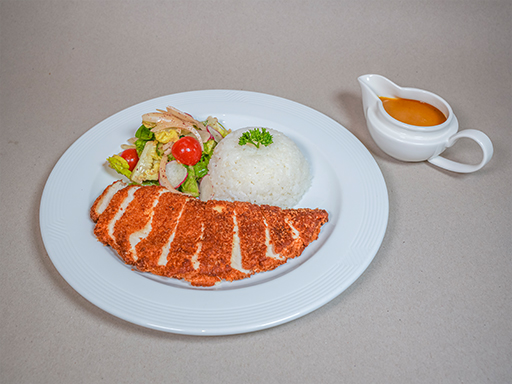 Panko Chicken, Katsu curry, Sticky Rice, Chef’s Salad